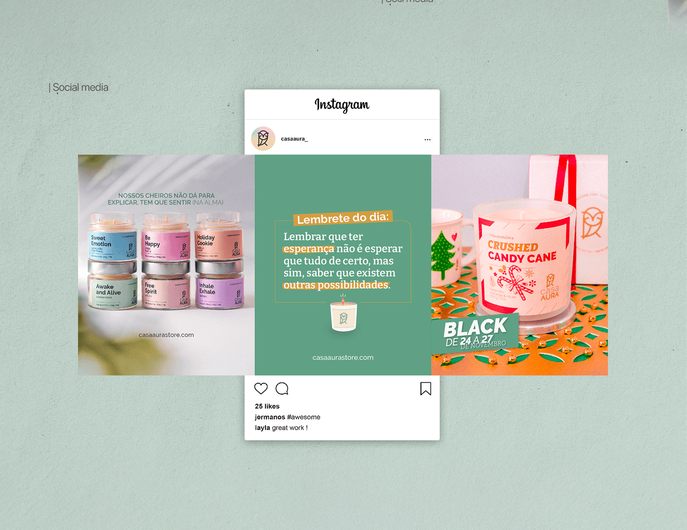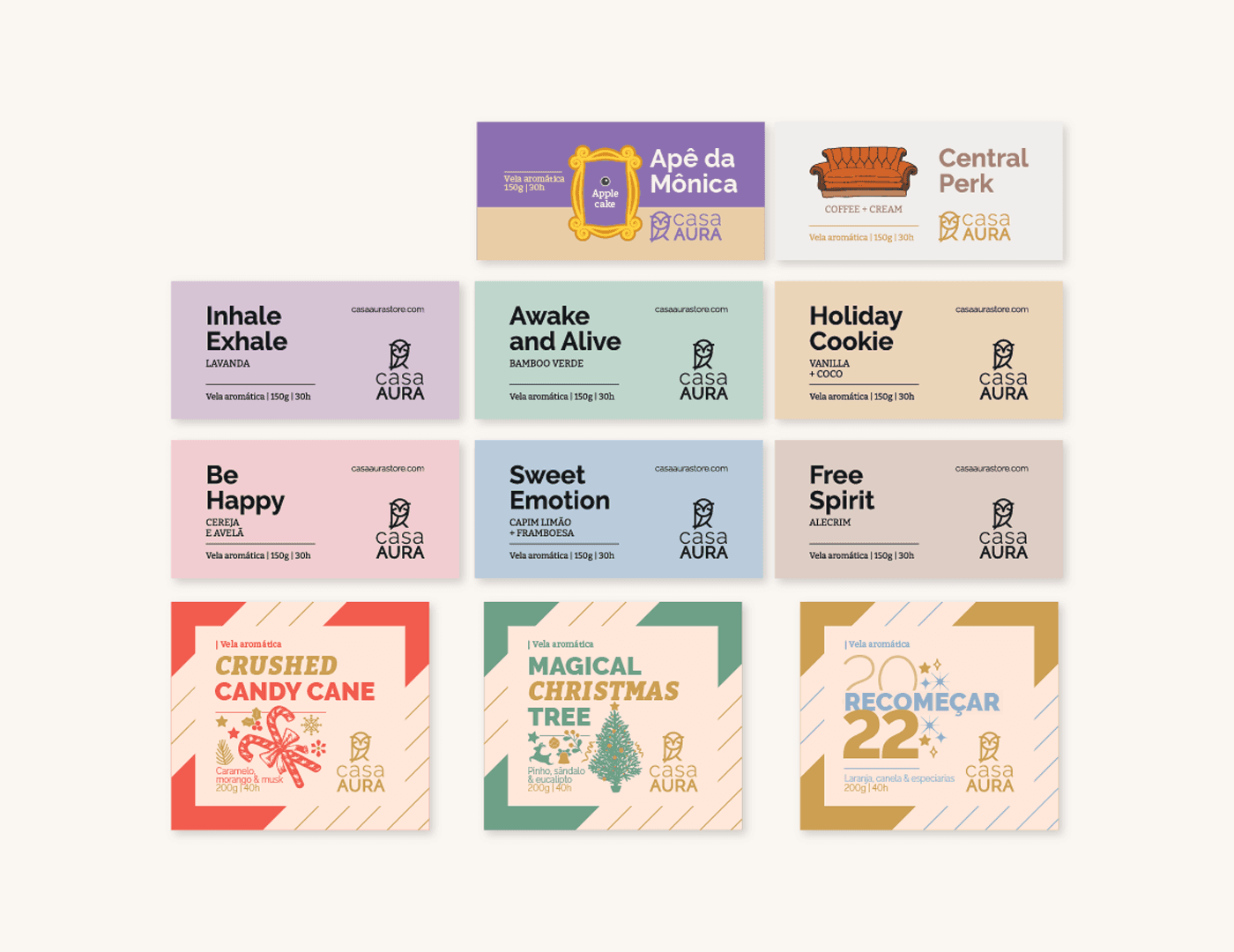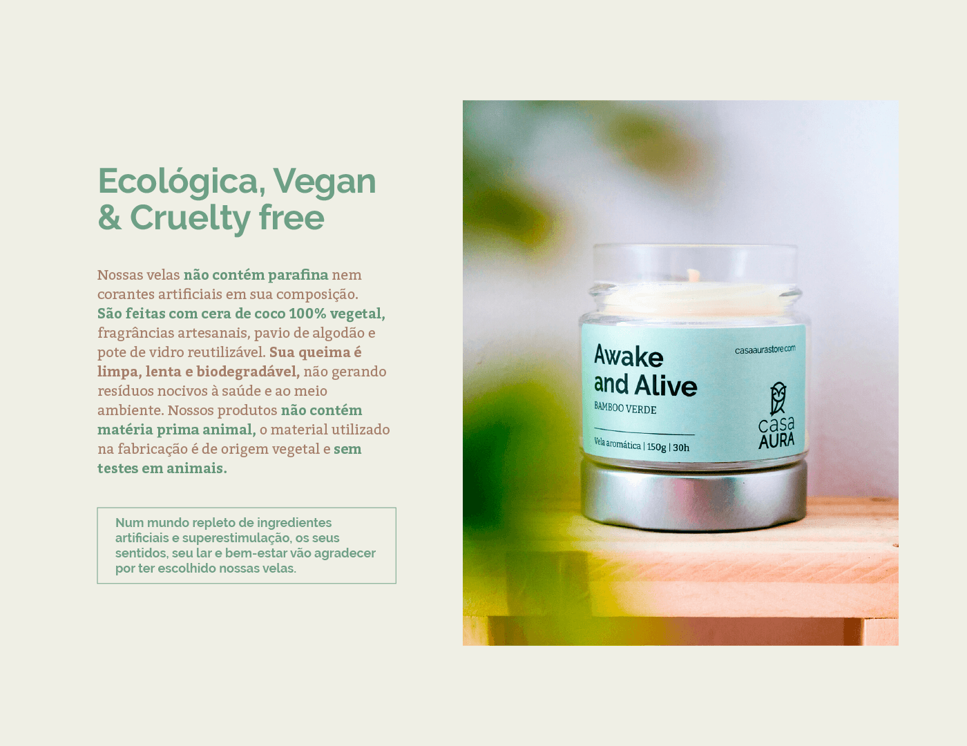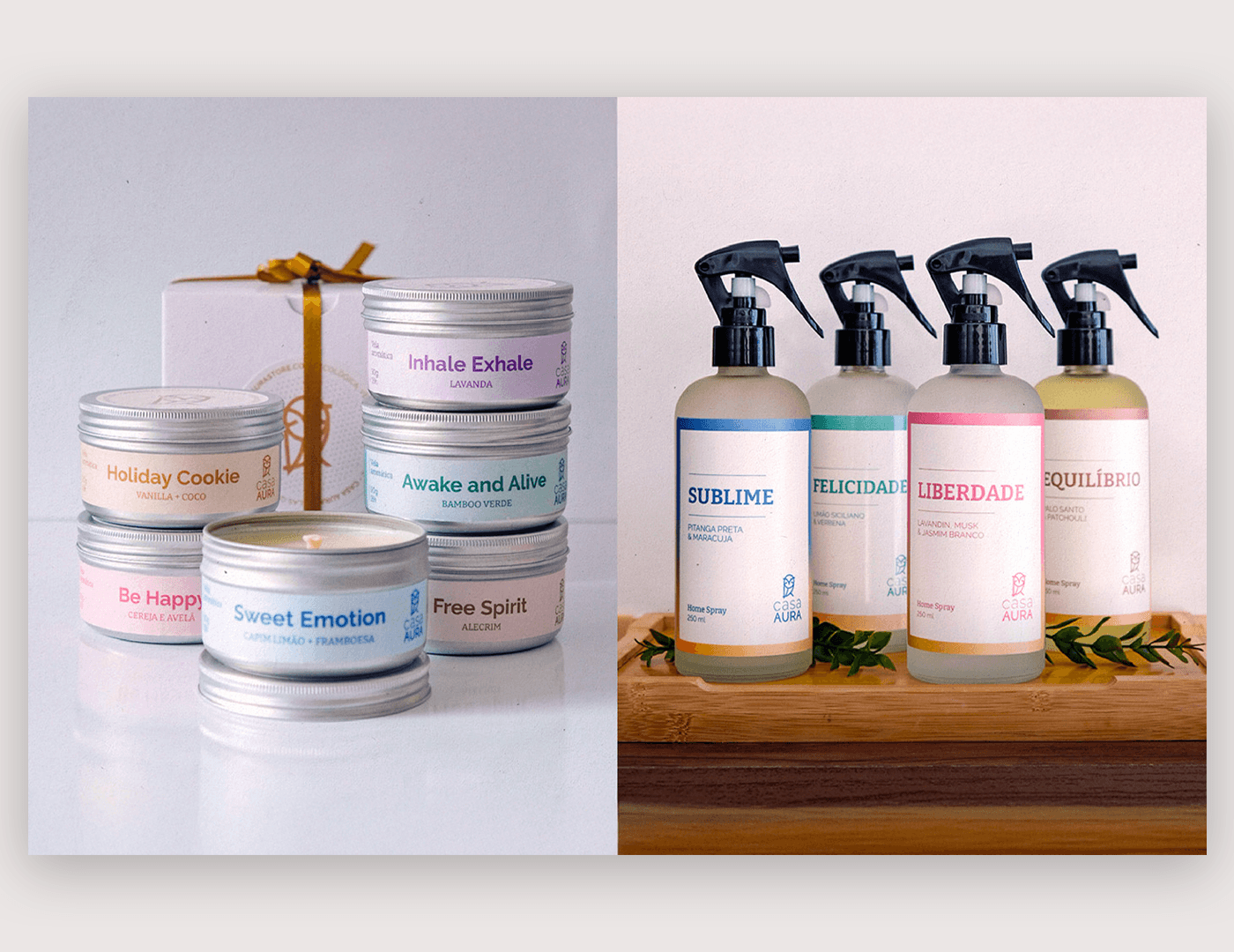 Casa Aura es una marca de velas artesanales ecológicas, veganas y cruelty-free, fabricadas en Brasil con ingredientes naturales y respetuosos con el medioambiente. Nace con el propósito de fomentar momentos de bienestar, calma y autocuidado en la vida cotidiana, conectando los sentidos con espacios de pausa y presencia. El símbolo principal de la marca es el búho, elegido por su carga simbólica y espiritual. Representa protección, sabiduría y guía para quienes están transitando procesos de cambio o transformación personal. Este concepto se convierte en el eje narrativo de la identidad, transmitiendo cercanía, acompañamiento y luz en cada etapa.