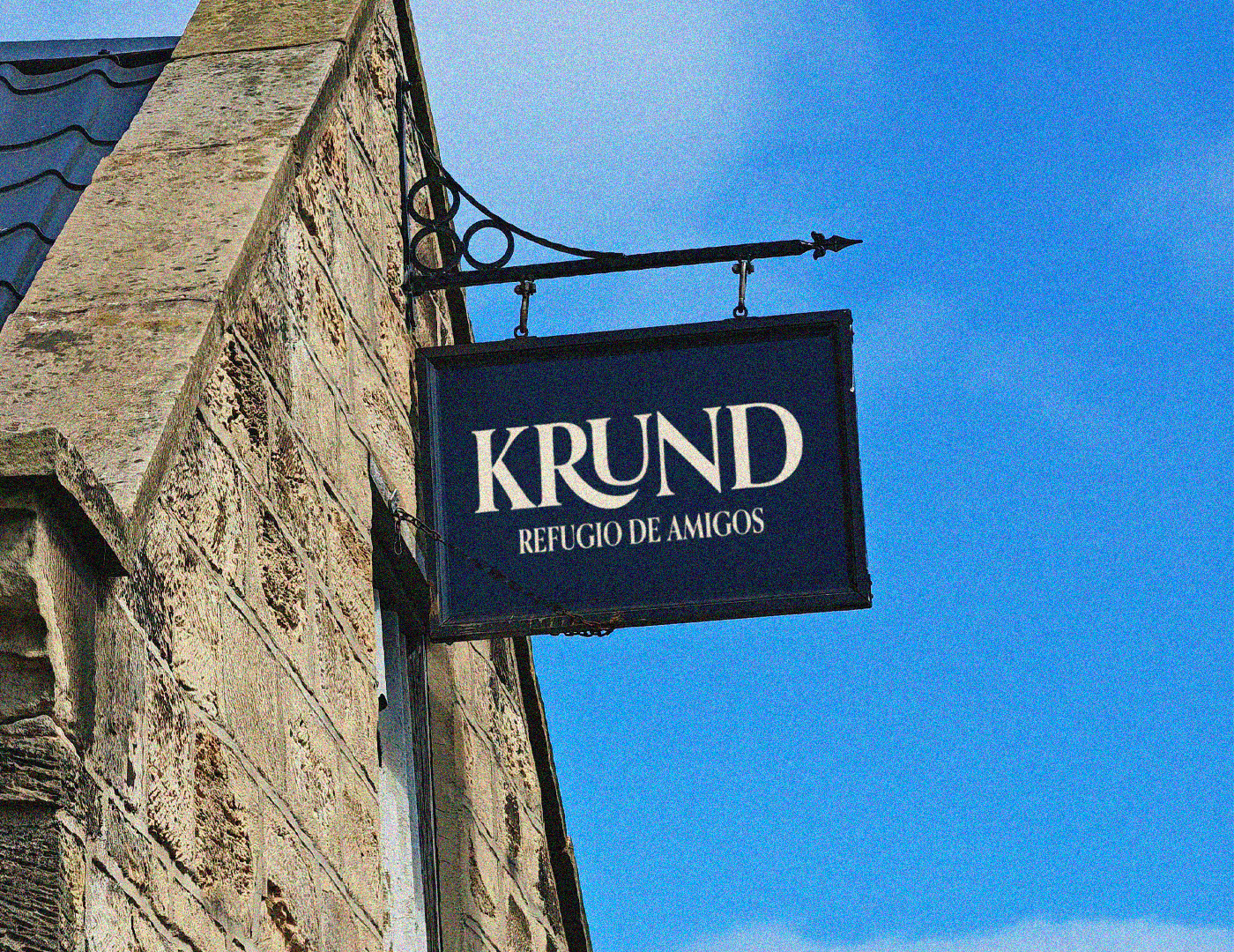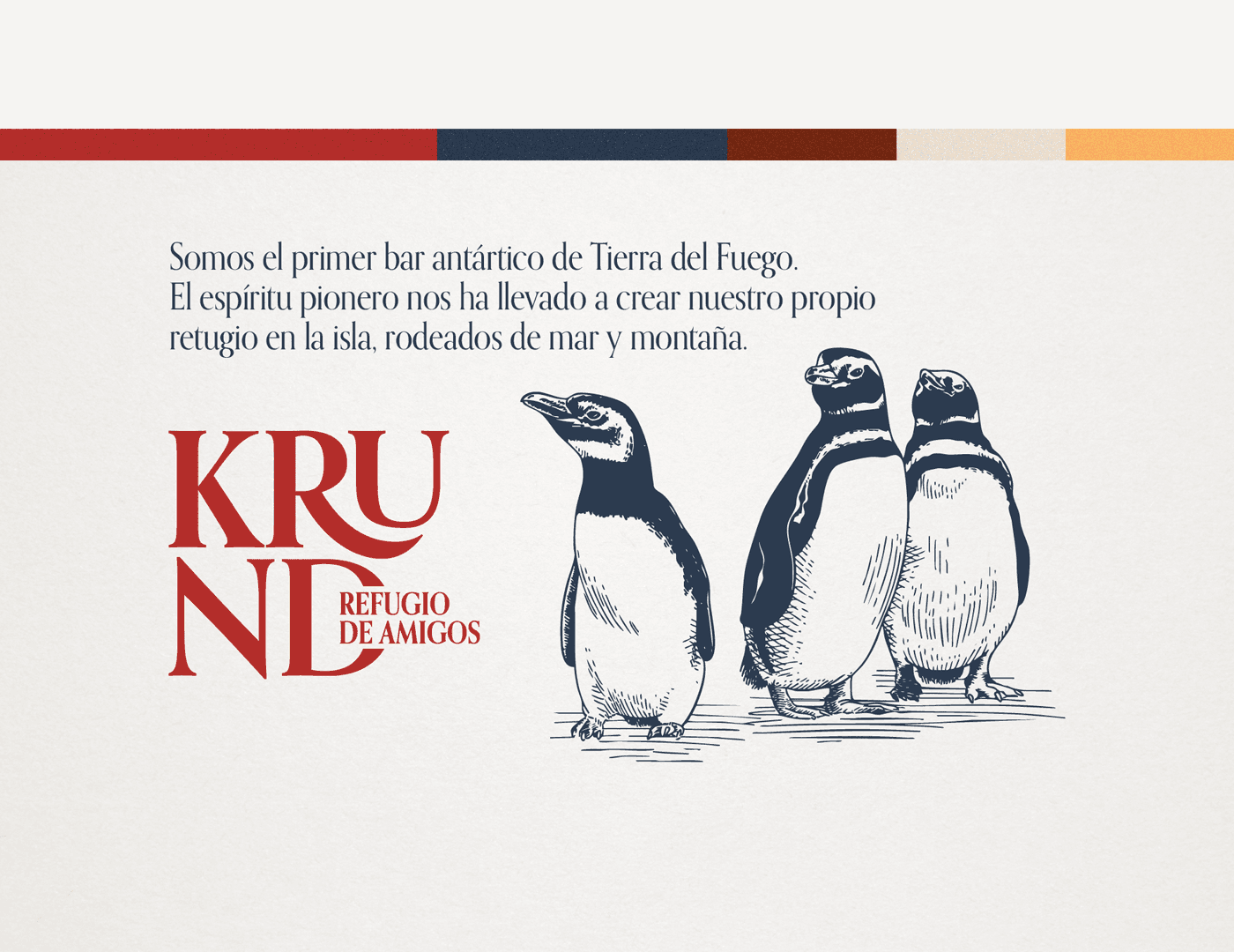Krund es el primer bar antártico de Tierra del Fuego, Argentina, y necesitaba una marca con historia y personalidad. El punto de partida fue Ernesto Krund, un explorador del siglo XX que, según la leyenda, llegó nadando hasta la costa fueguina: algunos dicen que escapaba de la ley, otros que buscaba oro, y muchos creen que simplemente se dejó conquistar por el paisaje austral. Esa esencia aventurera y libre se transformó en el núcleo del branding: una narrativa clara, auténtica y conectada con el territorio, que refleja carácter, experiencia y una identidad con sentido propio.